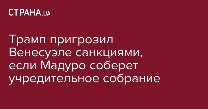 Дональд Трамп заявил о сильных и быстрых экономических действиях, если президент Венесуэлы Николас Мадуро созовет Учредительное собрание 30 июля. Об этом сообщает Reuters.