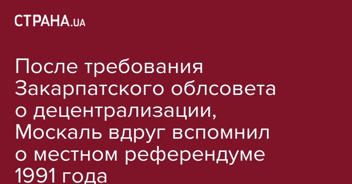 Глава Закарпатской областной государственной администрации Геннадий Москаль обратился в Окружной административный суд с требованием признать результат областного референдума 1 декабря 1991 года, на котором выносился вопрос о предоставлении Закарпатской области широких полномочий в составе Украины, не имеющим юридической силы. Об этом сообщается на персональном сайте Геннадия Москаля.