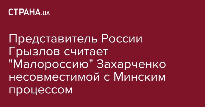 Полномочный представитель России в Трехсторонней контактной (Минской) группе по урегулированию ситуации на Донбассе Борис Грызлов заявил, что создание так называемой "Малороссии" не согласуется с Минским процессом. Представитель Кремля назвал заявление Захарченко приглашением к диалогу. Об этом сообщает "Интерфакс".