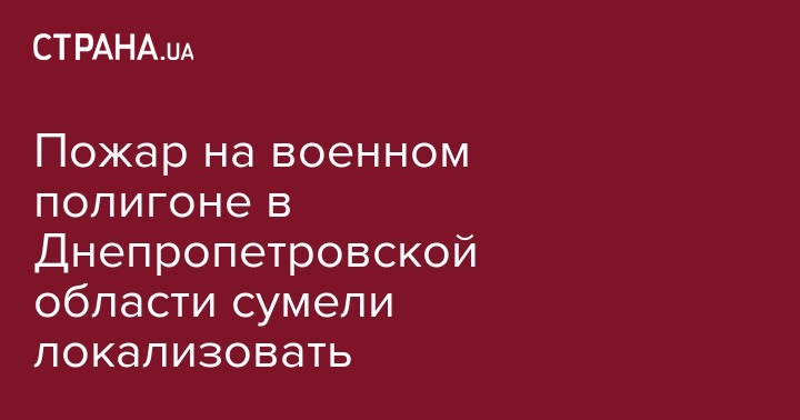 Пожарные сумели локализовать пожар на военном полигоне вблизи поселка Гвардейское Новомосковского района Днепропетровской области. Пламя, вспыхнувшее на территории военного полигона Министерства обороны, не могли потушить более суток. Об сообщает пресс-служба Государственной службы по чрезвычайным ситуациям (ГосЧС).