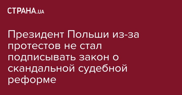Президент Польши Анджей Дуда не стал подписывать скандальный законопроект о судебной реформе, который уже прошел через Сейм. Об этом сообщает DW.