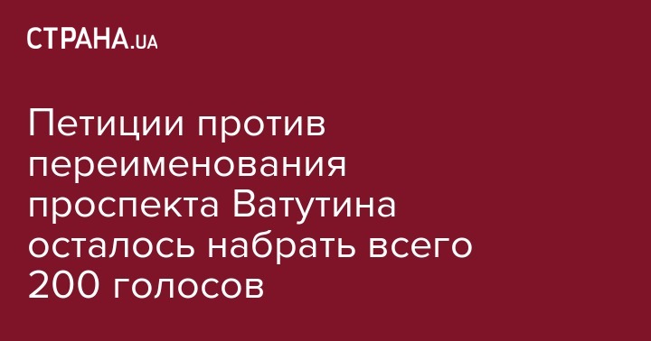 Петиция против переименования проспекта Ватутина в Шухевича набирает голоса с большой скоростью. Осталось менее 200 голосов, причем сбор подписей может продолжаться еще полтора месяца. Об этом свидетельствуют данные на портале электронных петиций Киевского горсовета.