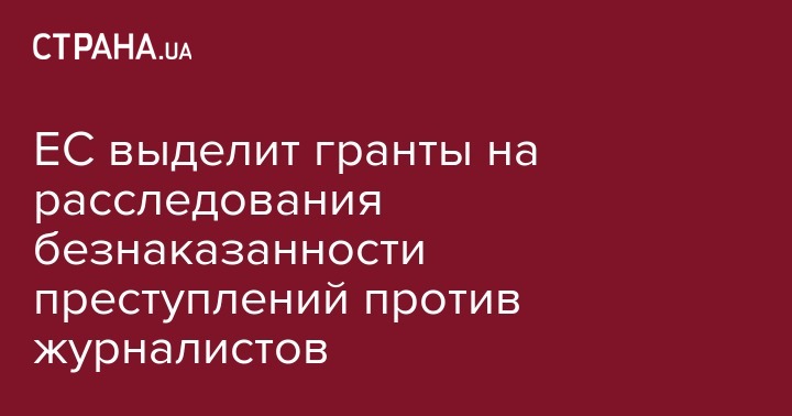 Украинским журналистам будут предоставлять гранты ЕС для расследований фактов безнаказанности за преступления против их коллег. Чтобы определить получателей грантов Национальный союз журналистов Украины и ОО Институт развития региональной прессы будут проводить конкурс. Об этом сообщает НСЖУ.