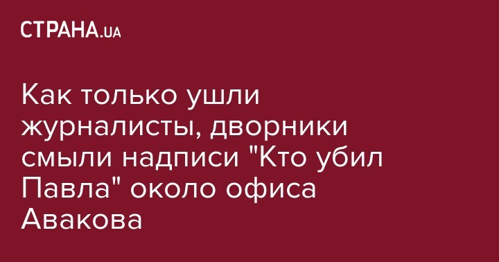 Как только ушли журналисты, дворники смыли надписи "Кто убил Павла" около офиса Авакова