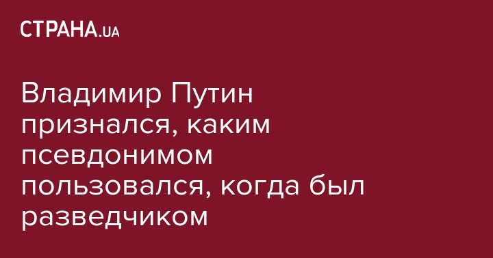 Владимир Путин признался, каким псевдонимом пользовался, когда был разведчиком