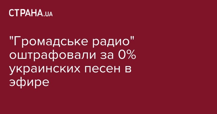 Проверка "Громадьского радио", которую провели специалисты Национального совета 2 апреля этого года, зафиксировала, что в эфире вещателя в промежуток времени с 15:00-22:00 доля украиноязычных песен составила 0%. Компания должна оплатить штраф 5% от общего размера лицензионного сбора, что составляет 1751,36 грн.