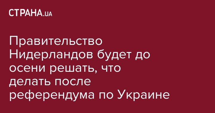 "Оценка кабинета министров и ответ правительства на результат, полученный избиркомом и комиссией по проведению референдума, будут направлены в парламент не позднее сентября 2016 года", - заявил в письме в парламент глава МИД Нидерландов Берт Кундерс.