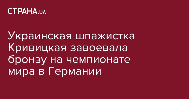 Украинская шпажистка Елена Кривицкая стала бронзовой призершей чемпионата мира по фехтованию, который проходит в Лейпциге. Об этом сообщает пресс-служба чемпионата.