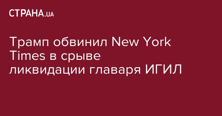 Президент США Дональд Трамп обвинил газету The New York Times в срыве попытки американских военных ликвидировать главаря террористической группировки "Исламское государство" Абу-Бакра аль-Багдади. Об этом он написал в Twitter.