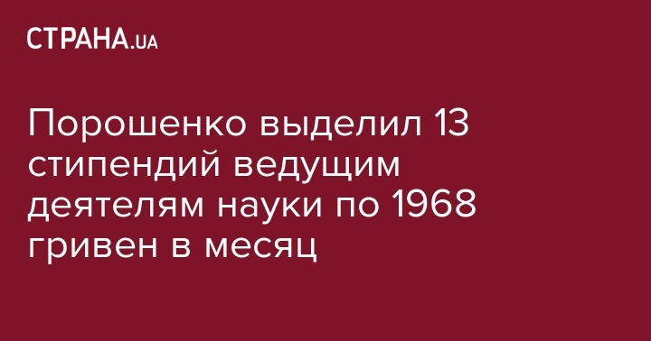 Президент Украины Петр Порошенко назначил 13 государственных стипендий выдающимся деятелям науки сроком на 2 года. Об этом говорится в указе главы государства №189 от 24 июля 2017 года.