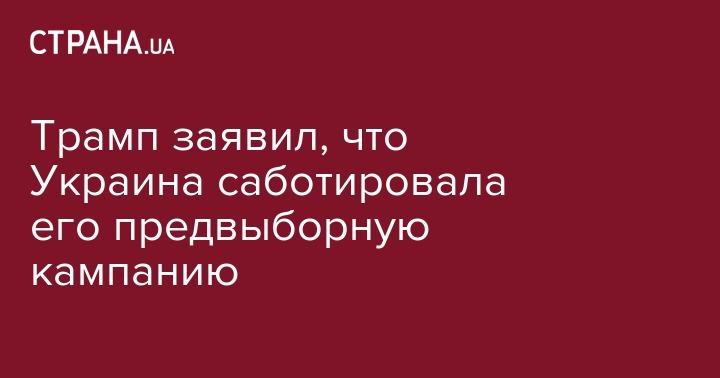 Президент США Дональд Трамп заявил, что Украина саботировала его предвыборную кампанию. Об этом он написал в своем Twitter.