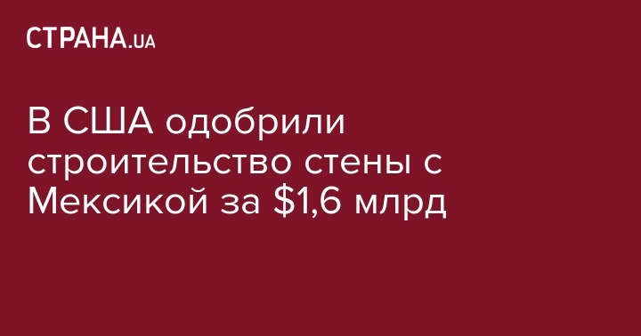 Палата представителей Конгресса США одобрила выделение $1,6 млрд на проект по строительству стены на границе с Мексикой. Об этом сообщает CNN.