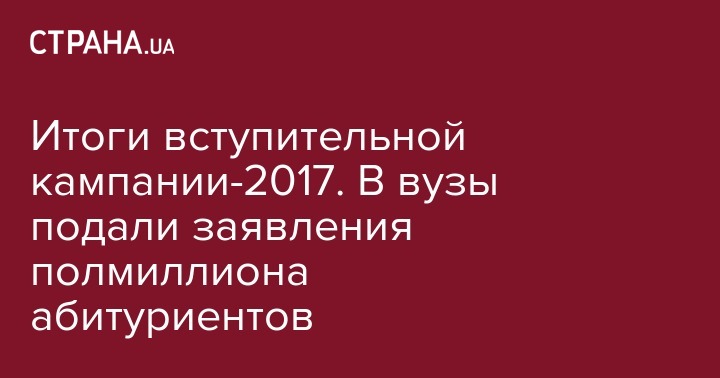 В 2017 году заявления на вступление в высшие учебные заведения Украины подали 511 146 абитуриентов. Об этом сообщают "Украинские Новости".