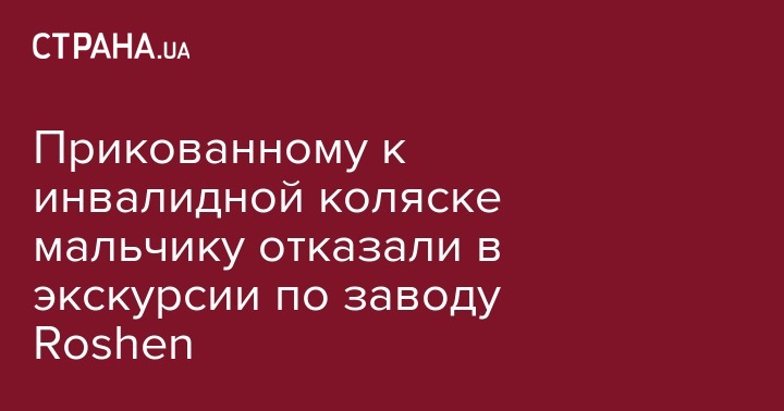 Прикованного к инвалидной коляске мальчика не впустили на завод Roshen на экскурсию. Об этом пишет Украинская правда со ссылкой на маму мальчика.