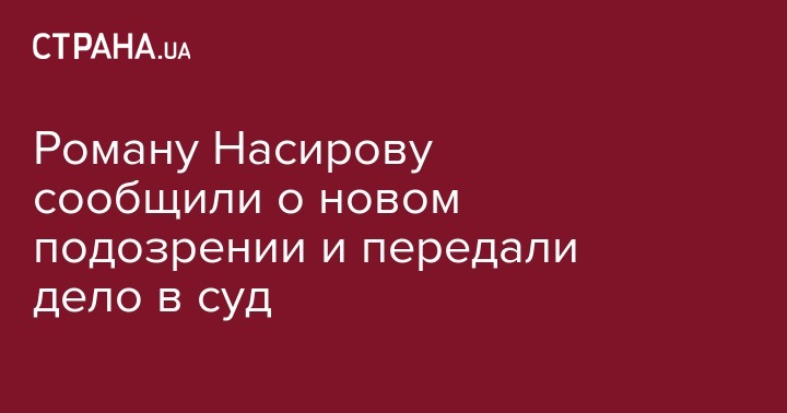 "По результатам проведенного досудебного расследования в уголовном производстве в отношении гражданина Украины и Великобритании – главы ГФС Украины Насирова Р.М., а также руководителя департамента ГФС Украины Новикова В.К., им сообщено об изменении ранее объявленного подозрения, о завершении досудебного расследования и открытии материалов уголовного производства в порядке ст. 290 УПК Украины", - говорится в сообщении САП на странице в Facebook в пятницу.