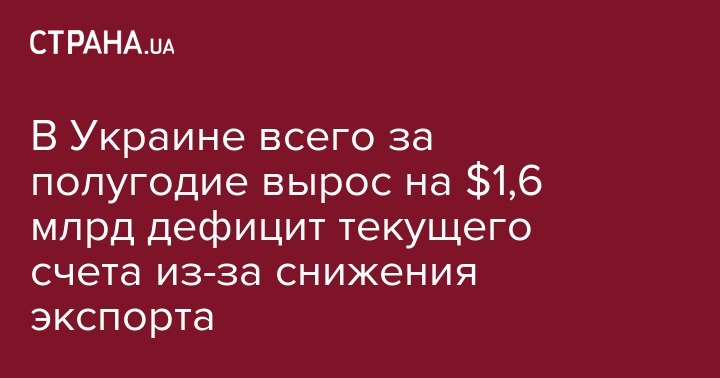 В Украине всего за полугодие вырос на $1,6 млрд дефицит текущего счета из-за снижения экспорта