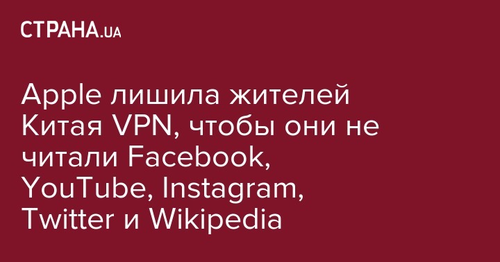 Apple лишила жителей Китая VPN, чтобы они не читали Facebook, YouTube, Instagram, Twitter и Wikipedia