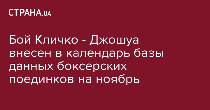 Бой Кличко - Джошуа внесен в календарь базы данных боксерских поединков на ноябрь
