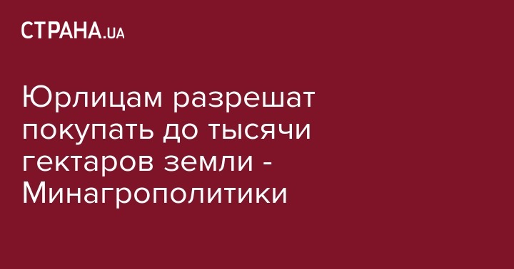 В Минагрополитики и продовольствия Украины не исключают внесения в законопроект "Об обороте земель сельскохозяйственного назначения" нормы, которая даст юрлицам право покупать до 1 тыс. га земли. Об этом сообщает "Интерфакс Украина".