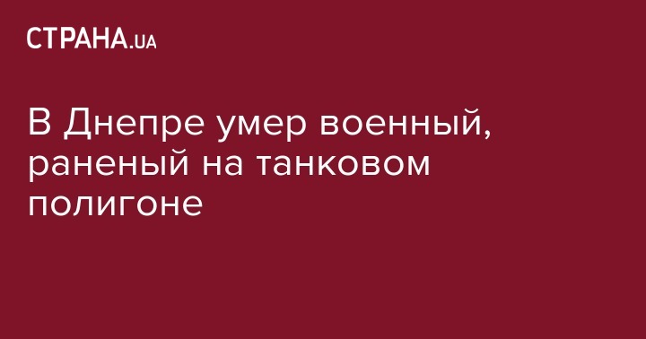 В Днепре умер военный, раненый на танковом полигоне