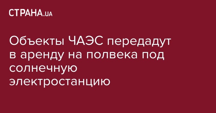 Объекты ЧАЭС передадут в аренду на полвека под солнечную электростанцию