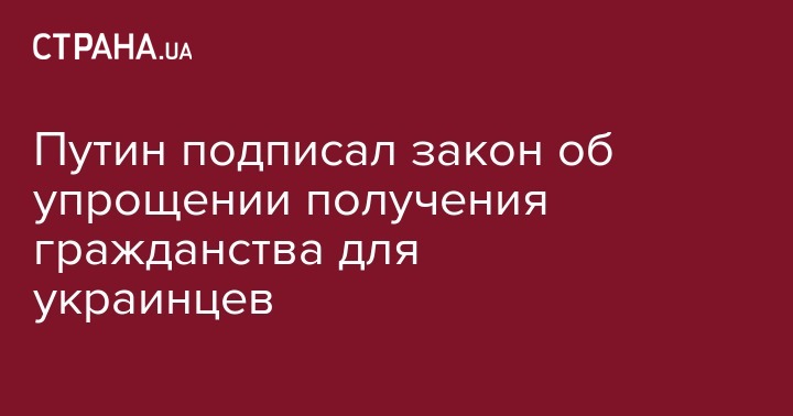Президент РФ Владимир Путин подписал одобренный Госдумой закон, который предусматривает упрощенный порядок предоставления гражданства украинцам, а также присягу на верность России при принятии ее гражданства. Об этом сообщает официальный портал правовой информации России.