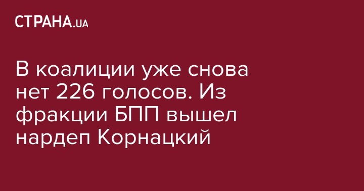 В коалиции уже снова нет 226 голосов. Из фракции БПП вышел нардеп Корнацкий