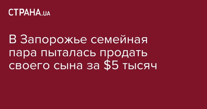 В Запорожье семейная пара пыталась продать своего сына за $5 тысяч