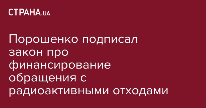 Президент Петр Порошенко подписал закон №2125-VIII, который должен улучшить механизм финансирования обращения с радиоактивными отходами, принятый 11 июля Радой. Об этом сообщает пресс-служба гаранта.
