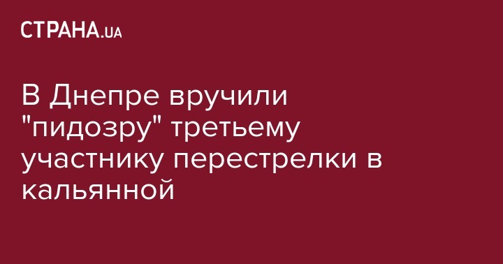 В Днепре следователь полиции вчера вечером, 31 июля, вручил уведомление о подозрении третьему участнику перестрелки возле кальянной, произошедшей 24 июля. Об этом сообщили в местной полиции, передает УНИАН.