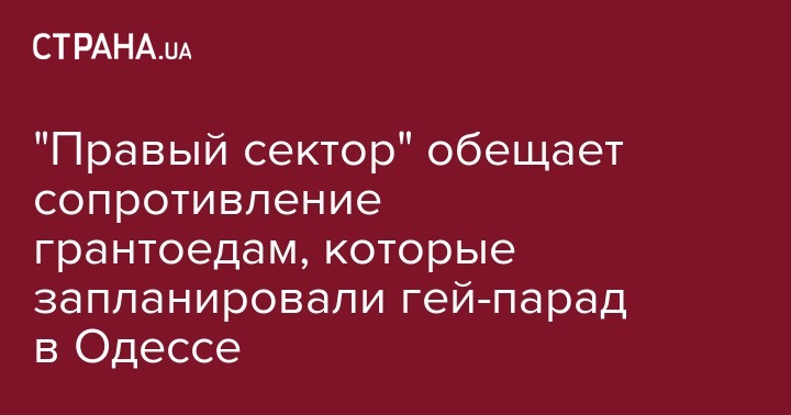 "Правый сектор" выступает за консервативные и христианские ценности как прочную опору украинской государственности. Поэтому мы будем всеми возможными способами сопротивляться негативному влиянию грантоедов", - говорится в заявлении одесского отделения организации на странице в Facebook во вторник.