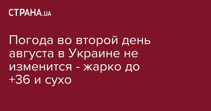 Сегодня, 2 августа, в Украине сохранится жаркая погода без осадков, до +32...+34. Об этом свидетельствуют данные Укргидромета.