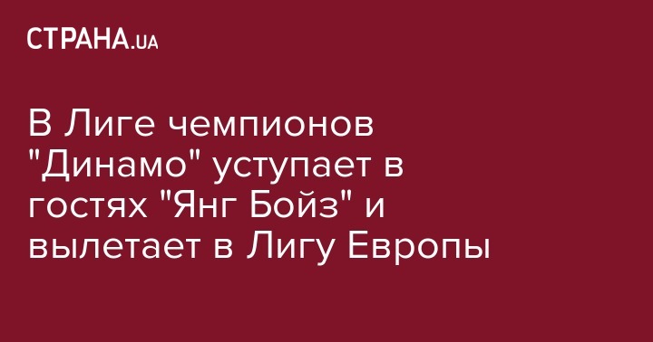 В Лиге чемпионов "Динамо" уступает в гостях "Янг Бойз" и вылетает в Лигу Европы