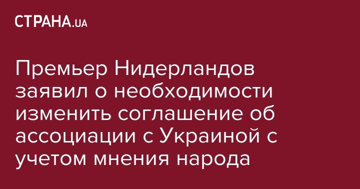 Премьер Нидерландов заявил о необходимости изменить соглашение об ассоциации с Украиной c учетом мнения народа