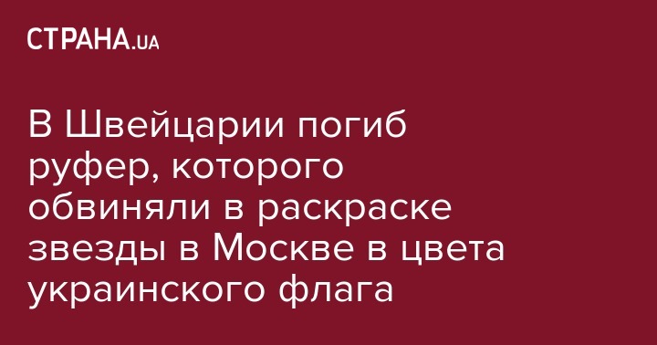 В Швейцарии во время бейс-прыжка скончался российский руфер Алексей Широкожухов, которого обвиняли в раскрашивании советской звезды в Москве в цвета украинского флага. О гибели парня на своей странице в Twitter заявил отец Широкожухова Александр Карпухин.