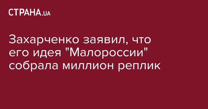 Захарченко заявил, что его идея "Малороссии" собрала миллион реплик