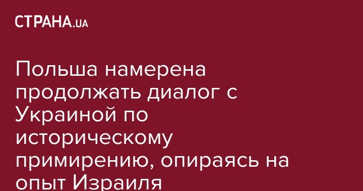 Польша намерена продолжать диалог с Украиной по историческому примирению, опираясь на опыт Израиля