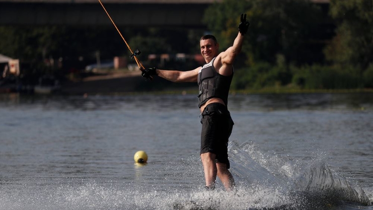 "По собственному опыту скажу: безумная жара - не повод отказываться от активного образа жизни и спорта. К моим утренним традиционным велотренировкам добавился вейкбординг. Очень бодрит утром. После этого можно и неожиданно проверить, какие из коммунальных служб "ранние" в работе. Пешеходный мост на Труханов, к примеру, ремонтируют добросовестно. Ко Дню Независимости, как и обещали, работы закончат", - написал у себя в социальной сети Кличко.