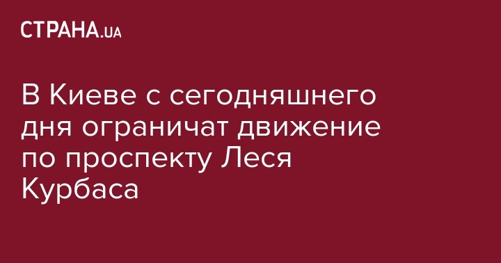 В Киеве сегодня, 8 августа, с 20:00 ограничат движение автотранспорта на проспекте Леся Курбаса на участке от ул. Гната Юры до Борщаговского путепровода. Об этом сообщает Киевавтодор в Facebook.