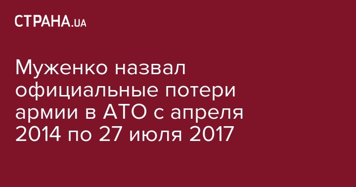 С начала АТО (апреля 2014 года) по 27 июля 2017 на Донбассе погибли 2307 украинских военнослужащих. Еще 8185 человек получили ранения. В это число не включены так называемые небоевые потери.