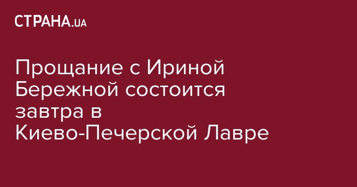 Прощание с экс-депутатом и правозащитником Ириной Бережной, которая погибла в ДТП 5 августа, состоится в четверг, 10 августа, в Трапезной Киево-Печерской Лавры. Об этом "Стране" сообщили родственники погибшей.