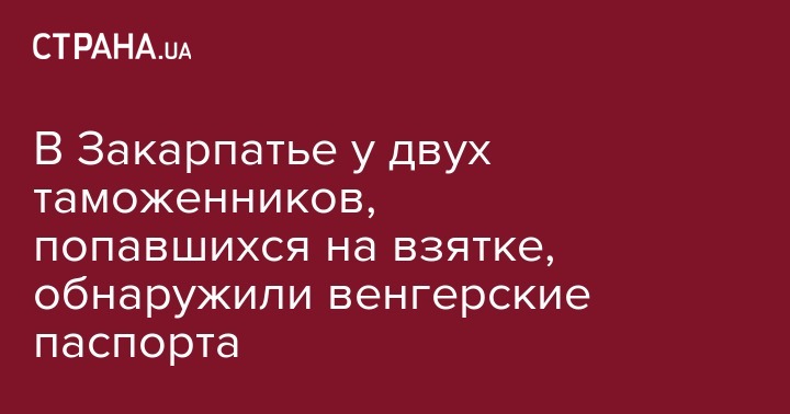В Закарпатской области правоохранители задержали за взяточничество двух таможенников пункта пропуска "Вилок" и обнаружили у них венгерские паспорта. Об этом сообщает пресс-сслужба Национально полиции Украины.