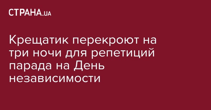 Как сообщала "Страна", в Киеве с 16 по 24 августа на время проведения тренировки и парада войск с прохождением в пешем порядке по ул. Крещатик (участок от Бессарабской площади до Европейской площади) будет ограничено движение.