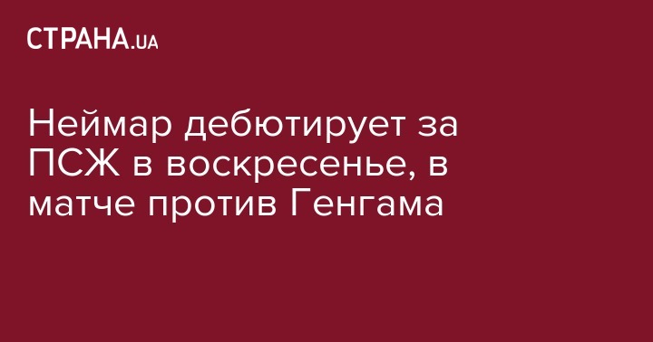 Неймар дебютирует за ПСЖ в воскресенье, в матче против Генгама