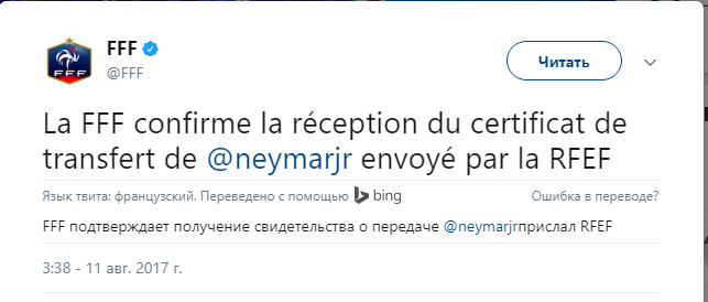 Федерация футбола Франции подтвердила, что новоиспеченный футболист ПСЖ Неймар, купенный парижанами за рекордные 222 млн евро, дебютирует за свой новый клуб в это воскресенье, 13 августа. Об этом сообщается на официальной странице Федерации футбола Франции в Twitter.