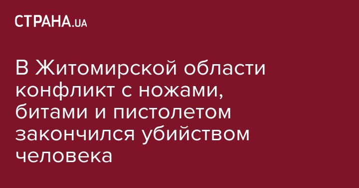 В отделе коммуникации ГУНП в Житомирской области рассказали, что четверо молодых людей приехали в Пулин, где встретили местного жителя. После спора четверо жителей Коростенского района начали наносить мужчине удары ножом и бейсбольными битами, также в руках у них был пистолет. В ответ местный, защищаясь, тоже достал нож, которым ранил двух нападавших, один из парней от полученных ран погиб.