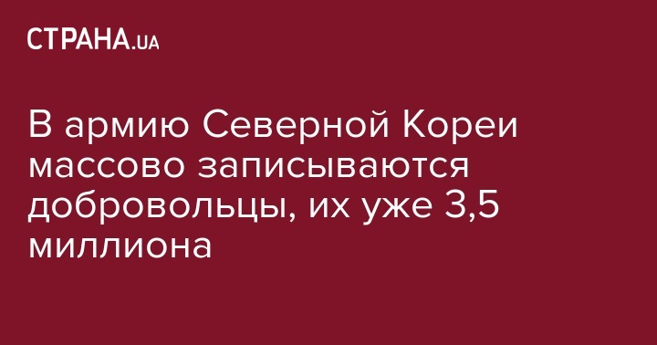 Северная Корея заявила, что в последние дни почти 3,5 миллионов рабочих, членов партии и бывших солдат изъявили желание присоединиться к армии. Об этом сообщает CNBC со ссылкой на официальную газету КНДР Rodong Sinmun.