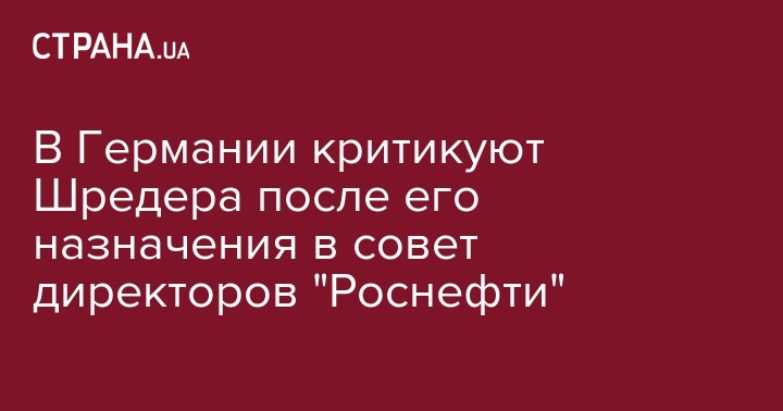 Новость о выдвижении бывшего канцлера Германии Герхарда Шредера в совет директоров "Роснефти" вызвала критику со стороны немецких политиков. Об этом сообщает Deutsche Welle.