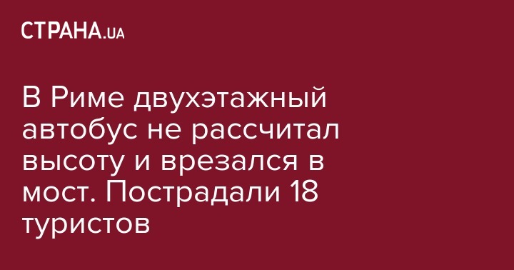 В Риме двухэтажный автобус не рассчитал высоту и врезался в мост. Пострадали 18 туристов