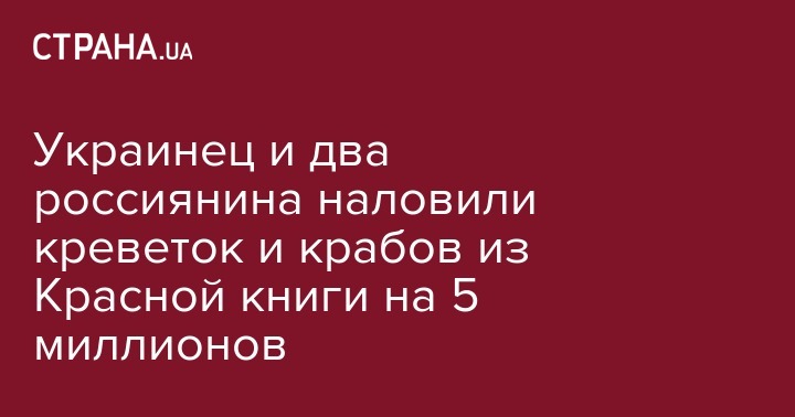 "Наш соотечественник и два гражданина Российской Федерации, постоянно проживающие на территории Украины, запрещенными средствами выловили более 42 тысяч креветок и 93 краба, которые занесены в Красную книгу Украины", - сообщили  в ведомстве.